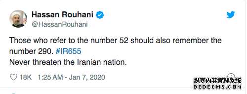 魯哈尼所說的“290”指的是發(fā)生于30多年前的一次空難。1988年7月,伊朗航空公司665號班機(jī)在波斯灣被美軍擊落,機(jī)上290人全部遇難。美國政府解釋,當(dāng)時這架客機(jī)未對軍事和民用無線電信號作出回應(yīng),繼而被美方誤認(rèn)為正在執(zhí)行任務(wù)的戰(zhàn)機(jī)。伊朗政府則認(rèn)為,在兩伊戰(zhàn)爭期間,美國通過擊落伊朗客機(jī)表示對伊拉克的支持。