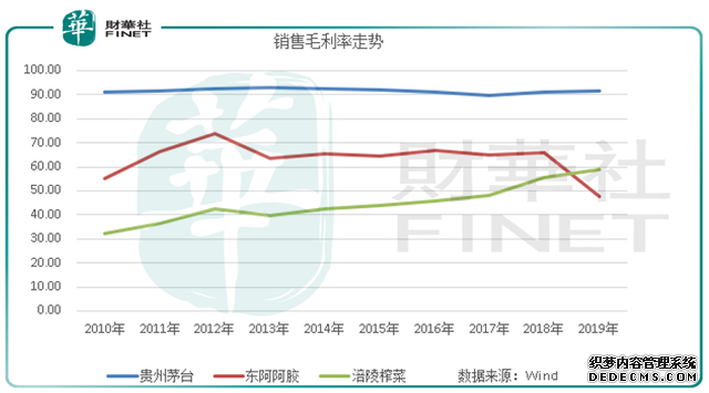 這還只是東阿阿膠的綜合毛利率,而東阿阿膠系列毛利率更高,歷年都保持在70%以上,甚至2019年毛利率還達到68.02%。這也是公司為何獲得“藥中茅臺”美名的原因。