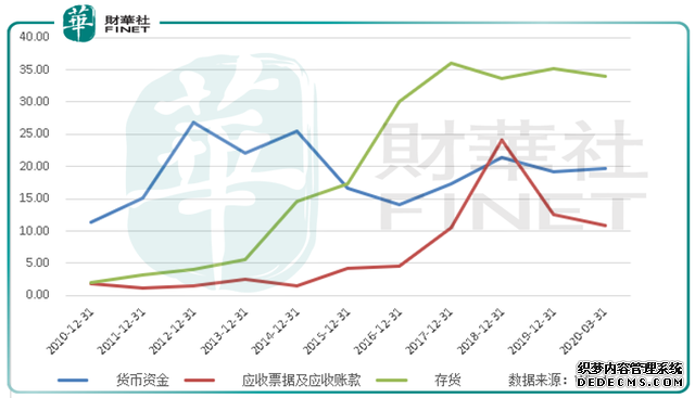 Wind顯示,公司2017年公司存貨達36.07億元已經(jīng)顯露危機, 2018年為33.67億元,2019年公司存貨波動上升達35.22億元。
